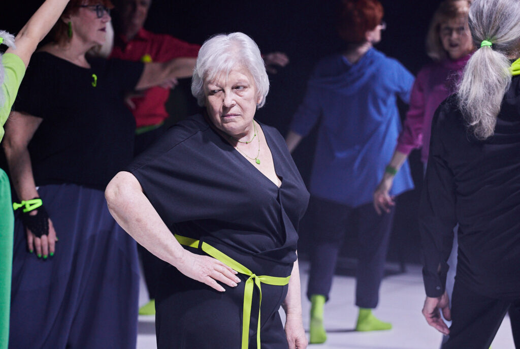 Pokaz powarsztatowy seniorek i seniorów, którzy wzięli udział w laboratoriach, będących częścią rezydencji badawczej choreografek i tancerek Moniki Szpunar oraz Evy Mory González w Cricotece w Krakowie.